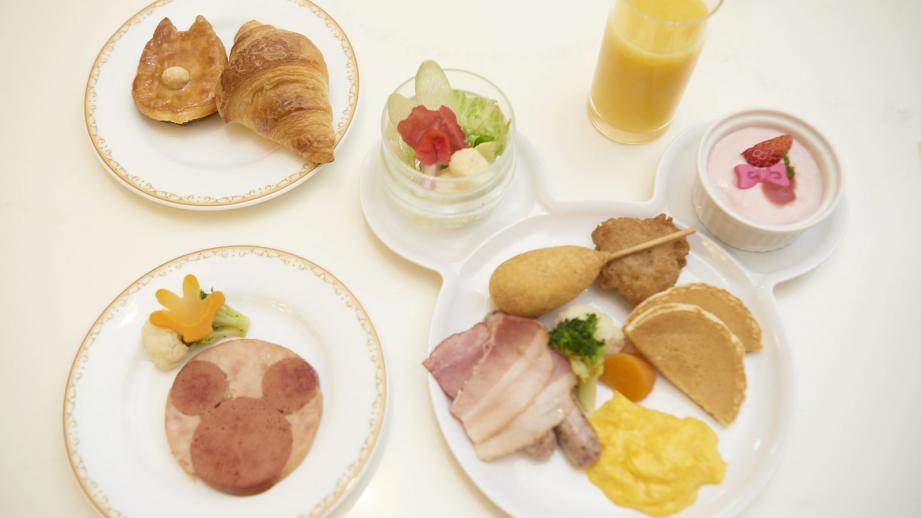 ディズニーキャラクターのミッキーマウスやミニーマウス、ティンカー・ベルなどをイメージした料理の数々をブッフェスタイルで提供。
