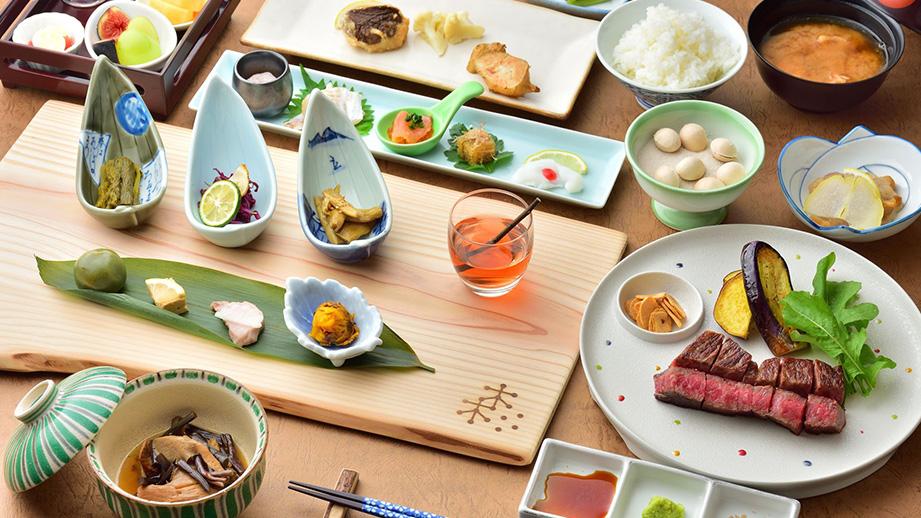 【美食旅】プランでいただけるのは、日本海で獲れた新鮮な魚介類と、板長自ら仕入れた季節の野菜を主役に構成される伝統日本料理。決まった献立を持たないのは、その日最良の食材を味わってほしいとの想いから。職人の丁寧な手仕事と真心が感じられる、繊細でだしの香り豊かなお料理を堪能できます。