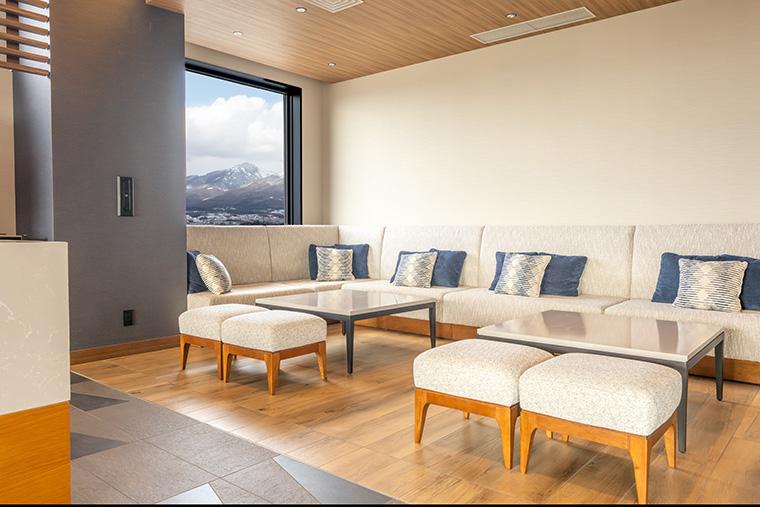 山並みを望むピクチャーウインドウの客室