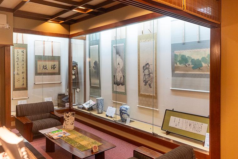 館内の古美術ギャラリーには、松本市出身の日本画家・西郷孤月(さいごうこげつ)の掛け軸も展示。この画家は、横山大観、下村観山、菱田春草とともに、日本画の大御所・橋本雅邦門下の四天王と表された人物。テレビ番組「なんでも鑑定団」に西郷孤月の掛け軸を鑑定してもらった結果、合計2,000万円という鑑定額で多くの人々を驚かせました。