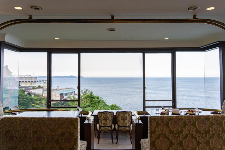 広大な相模灘と錦ヶ浦の断崖を窓越しに眺めながら、優雅なランチやティータイムを楽しめる絶景カフェ「Restaurant&Sweets 花の妖精」。