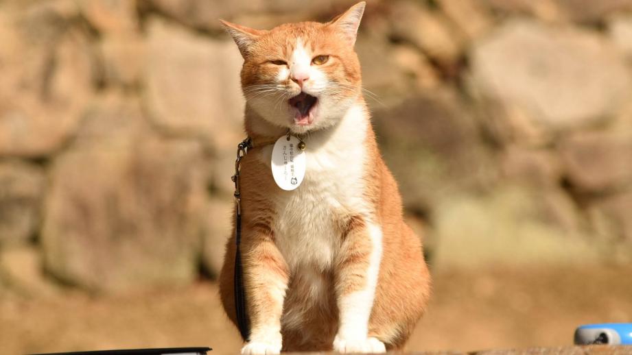 2018年7月豪雨災害の後、山をさまよっているうちに備中松山城に辿り着き、いつの間にか住みつくようになったオス猫。ただ愛くるしい表情を振りまくだけでなく、堂々たる威厳を漂わせるまさに城主のような存在です。