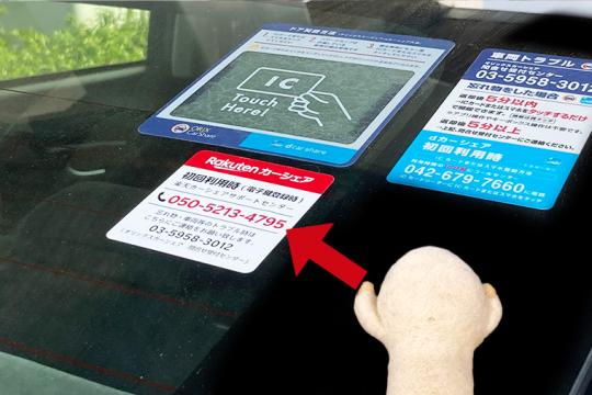 車の後ろに楽天カーシェアのステッカーとカードリーダーがあるので、そこに記載されている番号に電話をかけます。