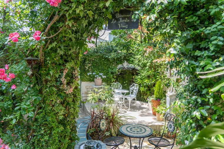 一歩足を踏み入れると、そこに広がるのは、「花の森」という言葉の通り、美しいバラをはじめとする花に囲まれた「クラリスガーデン」。2002年に宿がオープンして以降、20年以上の歳月とともに美しく成長を遂げた花々が咲き乱れる、フォトジェニックな空間です。