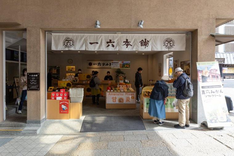 愛媛の銘菓「一六(いちろく)タルト」で知られる「一六本舗」の道後本館前店。