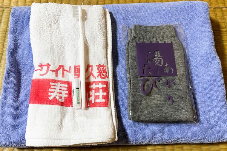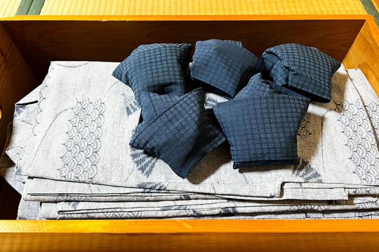 押入れの中には、浴衣と、タオルセット、湯上がり足袋が置いてありました。大浴場に行くときに持っていきましょう。