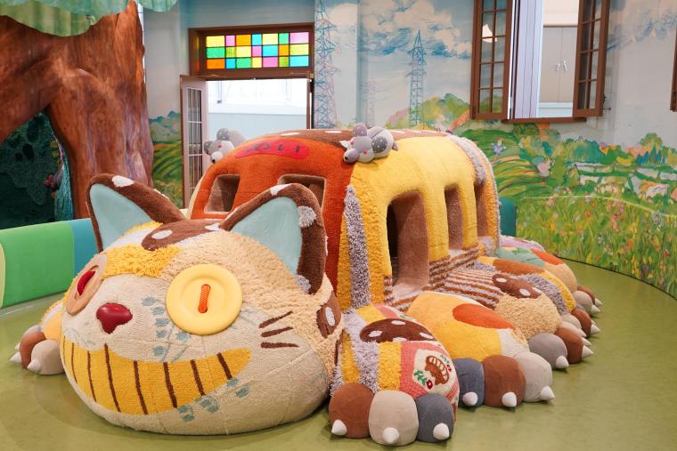 「ネコバスルーム」も子どもだけの場所。ジブリパーク限定デザインのネコバスはカラフルなパッチワーク風のデザインが素敵。