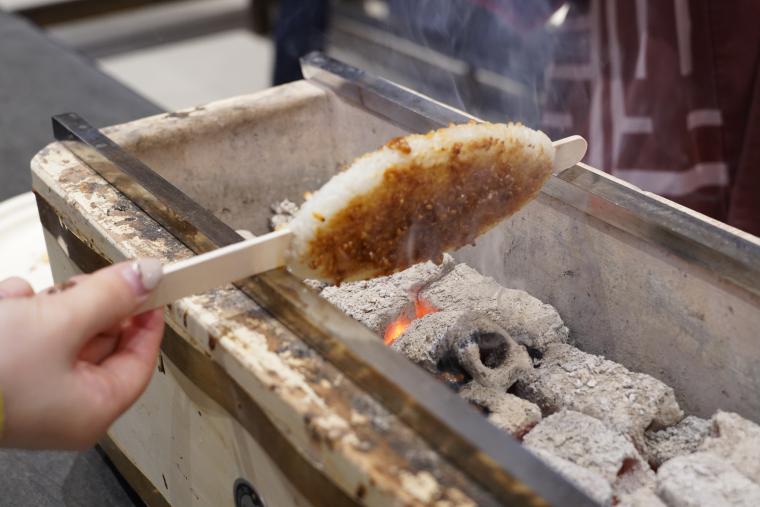 タタラ場のなかでは中部地方の名物「五平餅」の炭火焼体験(1,200円)ができます。