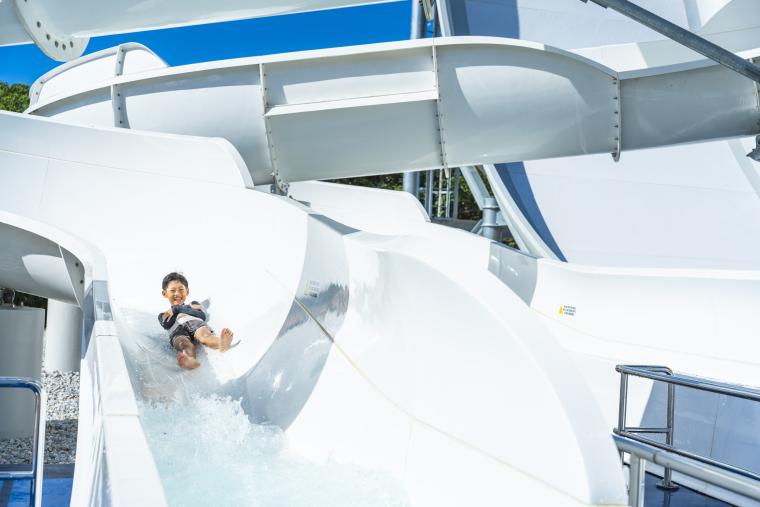 ラウンジやプールサイドバーでドリンクを手に入れたら、そのままプールへ。8~10月は朝9:00から夜22:00まで楽しめるオールデイプールで、その広さは沖縄県内最大級!「うまんちゅプール」「わらばープール」「ゆくるプール」「てぃんがーらプール」の4つのプール、そして3種のスライダーを楽しめます。