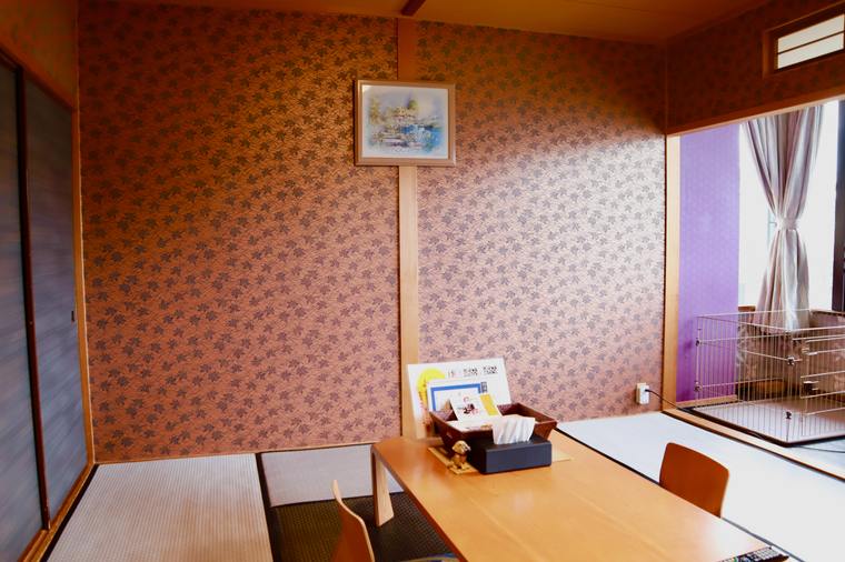 お部屋は全部で6室。10畳+2畳の広縁がついた和室は全室ともケージと犬用グッズ付き。犬用の特殊な畳を敷いているので、爪も引っ掛かりにくいです。