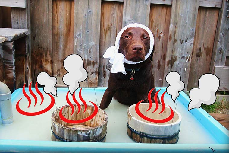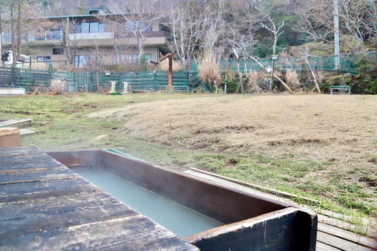 犬用の露天風呂もあり、大涌谷から湧いた温泉のかけ流しを浴びられます。隣には飼い主用の足湯もあるので、わんこと一緒に入浴したり、足湯に浸かりながら愛犬の様子を見たりと温泉旅館ならではの過ごし方ができます。