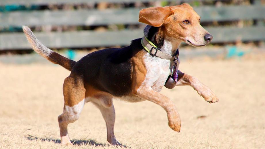 ジェリーはビーグルとのミックス犬。ブラック、モカ、ホワイトのトライカラーで、切れ長で琥珀色のきれいな目が特徴。