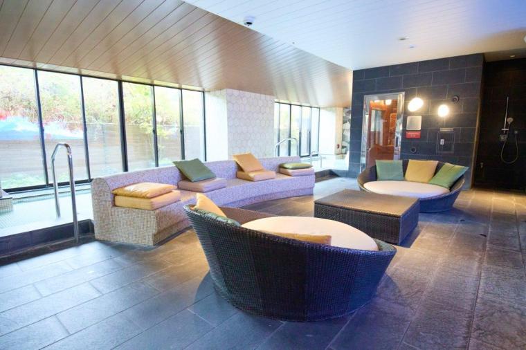 「サーマルスプリング」には、ゆったりと座れるソファ席も完備し、ヒマラヤ岩塩が入ったサウナも。岩塩を温めることで遠赤外線が放出し、より汗をかきやすい身体に。デトックス効果で一日をすっきりと始められます。