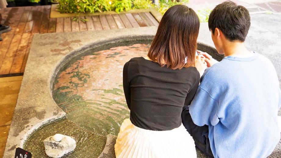 足湯に入りながらほっこりひと休み。足湯だけの利用もOKですが、足湯に入りながらの飲食はご遠慮頂いているそうです。