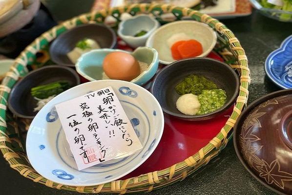 津田さんがSDGsの活動を積極的に行う中で、新しい出会いや人とのつながりが生まれることも多々あったそうです。現在「ホテル仙景」「離れ 山家荘」の朝食で卵かけご飯として提供している相模原・井上養鶏場の「平飼い卵」もその一つ。