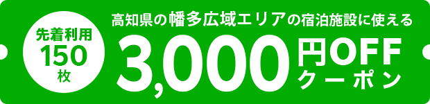 - ・クーポン名:幡多広域エリアの宿泊で使える3,000円割引クーポン