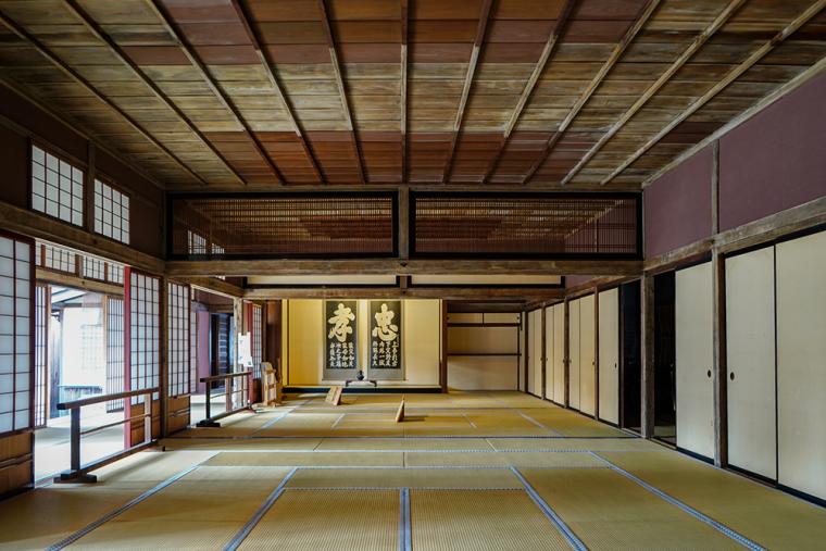 関を入るとすぐに目に入ってくるのが、正面壁の「青海波(せいがいは)」。青海波は、格の高い郡代が使うことができた模様なんです。飛騨高山の郡代は、いかに格式が高かったかが分かります。