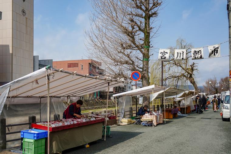 飛騨高山といえば、朝市も有名です。古くは江戸時代にはじまり、明治時代から朝市と呼ばれ、親しまれるようになりました。陣屋前広場と宮川沿いの2カ所にて、毎日開催されています。