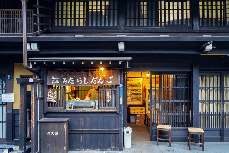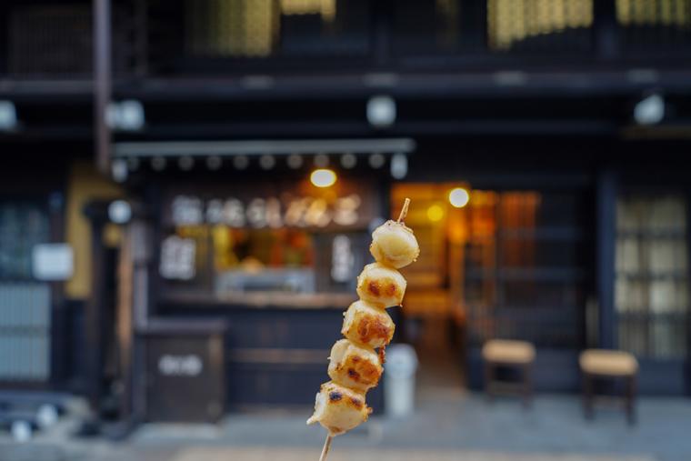 みたらし団子のお店の中でも、比較的遅い時間まで開いているのが「さん陣」。みたらし団子というとべっこう餡がたっぷりとかかった甘めのお団子というイメージがありますが、ここ飛騨高山のみたらし団子はお醤油が焦げた香りが香ばしいしょっぱめのお団子。1本から購入できるので、食べ歩きにもってこいです。