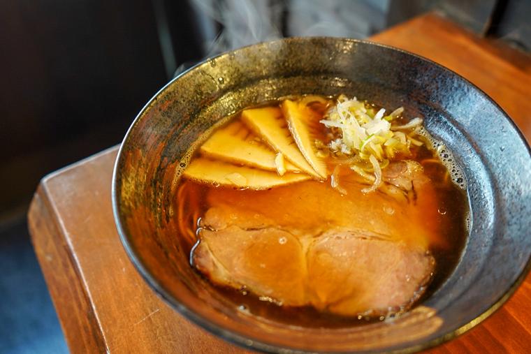 「中華そば(並)」(750円)は、高山ラーメン初心者にもおすすめのラーメン。中太のストレート麺で、動物・魚介出汁の旨味をバランス良くまとめたスープをほどよく絡めてくれます。