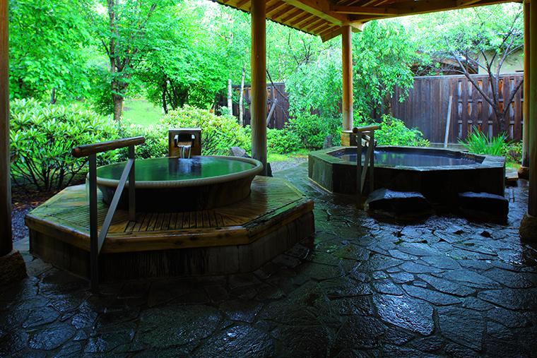森の中の露天風呂付温泉大浴場