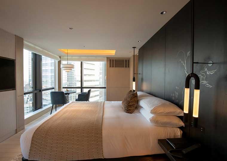 そんなホテルが、満を持して2020年10月に日本初上陸。ラグジュアリーホテルが立ち並ぶ東京・西新宿の一角にオープンしました。キンプトンホテルは、それぞれのホテルによってデザインが異なることも特徴のひとつですが、ここ「キンプトン新宿東京」がテーマに選んだのは、世界の文化をけん引するNYマンハッタンのアートシーン。クリエイティビティ溢れるNYのラグジュアリーな日常と、エネルギーに溢れる街・新宿。2つの都市が融合する、ここにしかない世界を1泊2日のステイで体験してきました。