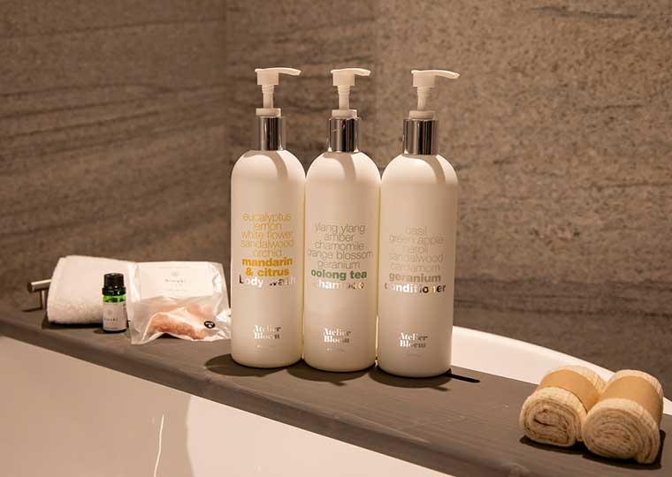 アメニティは、NY発のスキンケアブランド「MALIN+GOETZ(マリン&ゴッツ)」が開発した、キンプトンだけのオリジナルブランド「アトリエブルーム」が全室に用意されています。