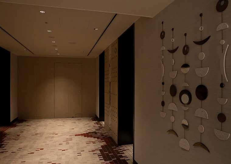 甲州街道に面した扉を開け、エントランスをくぐると目の前に現れるのが、壁面を飾るこの大きなアート。