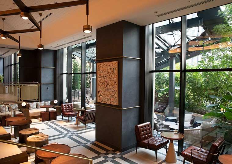 地上17階建ての建物なので、周辺の大規模なホテルに比べるとこじんまりした印象ですが、その点もこのホテルならではの魅力。というのも、キンプトン新宿東京はラグジュアリーでありながら、親しみやすさや温もりを併せ持っていることも特徴のひとつなのです。