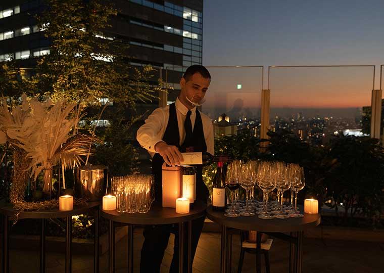 場所は日によって変わり、この日は16階「プレファンクションスペース」にて開催。テラスに出ると都心のノスタルジックな夜景が目の前に広がり、おいしいワインと共に非日常のひとときを盛り上げてくれます。ゲスト同士で旅の話に盛り上がったり、ペットを通じてコミュニケーションが生まれたりすることも多いそう。