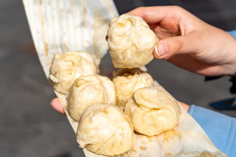 中でもおすすめなのが、豚まん発祥の店として知られる大正4(1915)年創業の老舗「老祥記(ろうしょうき)」の豚まん。中に肉汁がたっぷり入っており、濃厚な肉の旨味に感動!小ぶりなサイズなので、食べやすいのもうれしいポイント。