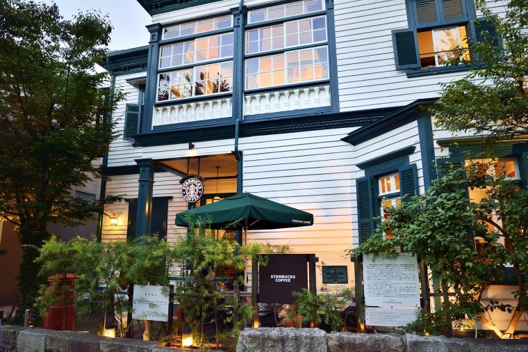 白と緑の外観が目印の「スターバックスコーヒー 神戸北野異人館店」は明治時代の洋館を利用した特別な店舗!部屋ごとに雰囲気が異なります。当時の雰囲気を楽しみながら一休みしては。
