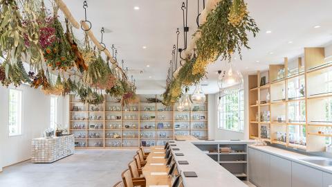 シェフが腕をふるうオープンキッチンが備えつけられ、信州ならではの食材が並ぶコーナーも充実。