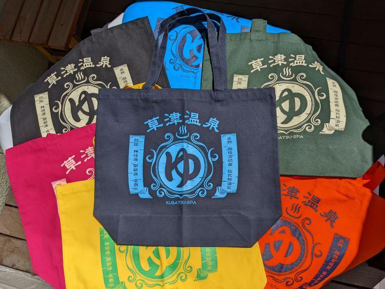 みやろく土産店オリジナルデザインの「草津温泉トートバック」。A4サイズもすっぽり入るトートは、丈夫なコットン素材でお出かけにぴったりです。