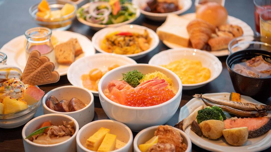 旅行クチコミサイトの「朝食のおいしいホテルランキング」で7年連続北海道1位を獲得しているラビスタ函館ベイ。ビュッフェスタイルの朝食は、2階「北の番屋」でいただきます。メニューは常時100種類以上あり、近海で獲れた魚介や郷土料理をはじめ、ホテル手作りの和食を中心に洋食からデザートまで。あまりの数の多さに目移りしてしまいます。