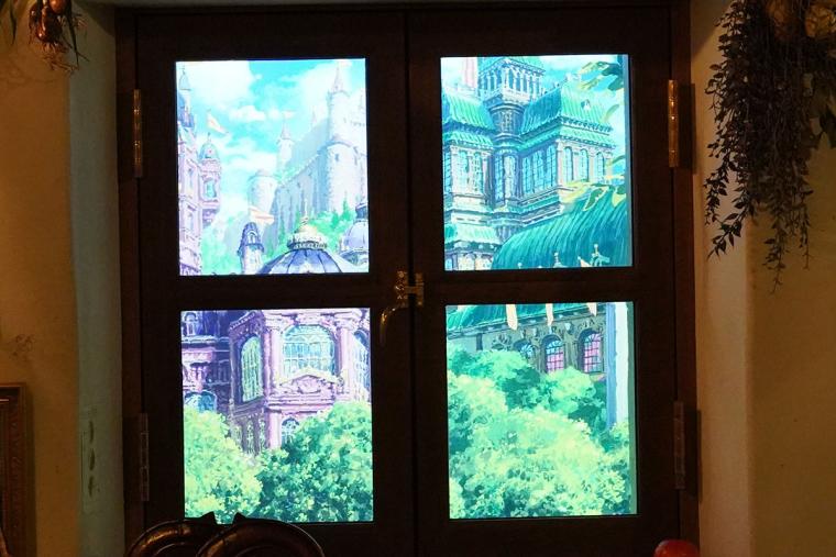 玄関脇のレバーを引っ張ると、窓の外の景色が変わるというギミックも。