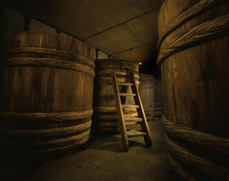 最初に案内される「仕込み蔵(一年蔵)」には、大豆・糀・塩を混ぜて寝かせる杉桶がずらりと並んでいました。ここで約1年、静かに熟成を重ねます。