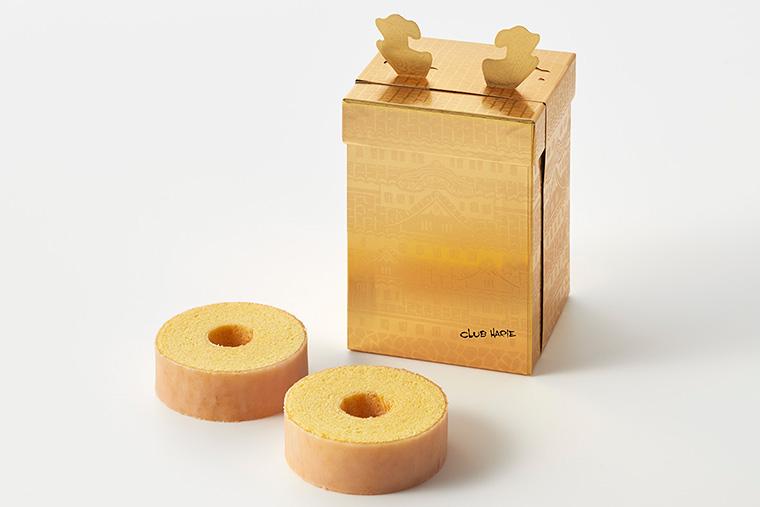 クラブハリエ独特のふんわりしっとりした食感でバームクーヘンブームの火付け役にもなった「クラブハリエ」ですが、「クラブハリエ B-studio 名古屋髙島屋店」ではなんと煌びやかな黄金の名古屋限定パッケージが販売されています。パッケージ全面に名古屋城やテレビ塔、モーニングや名駅の様子などがさりげなく描かれており、お土産として渡せば会話のきっかけにもなりそうです。ミニサイズ4個入りパッケージには金のしゃちほこの立体モチーフが鎮座!