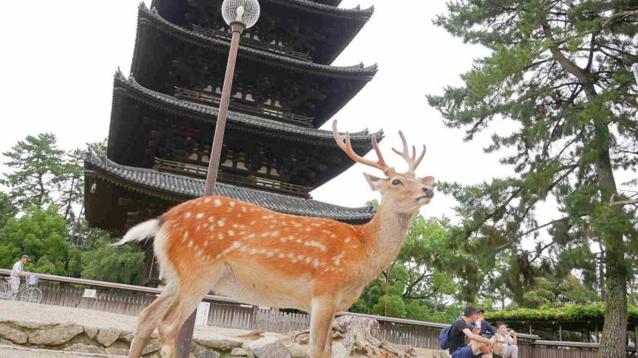 まずは興福寺から散策をスタート。早速たくさんの鹿がのんびり過ごしながらお出迎えをしてくれました!