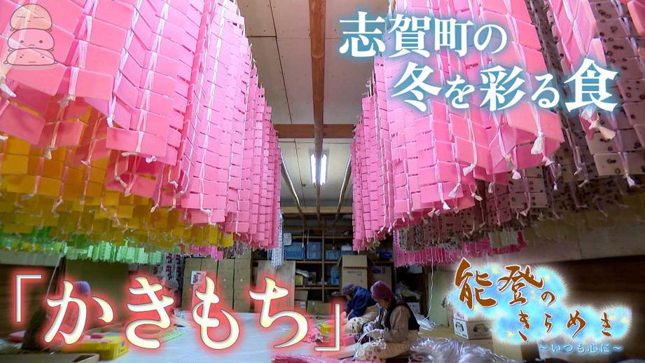 もち米とうるち米を使って冷たい「寒の水」で作られる志賀町特産の「かきもち」。矢駄地区ではそれぞれの家で子どもたちのおやつとして作られていた「かきもち」が、今では町の名物となり、素朴な味を求めて全国から注文が入るようになりました。厳しい冬の冷たい空気に40日以上さらす間、白い雪景色に彩りを添える色鮮やかなカーテンは、ほのかな温もりを醸し出すふるさとの風景です。