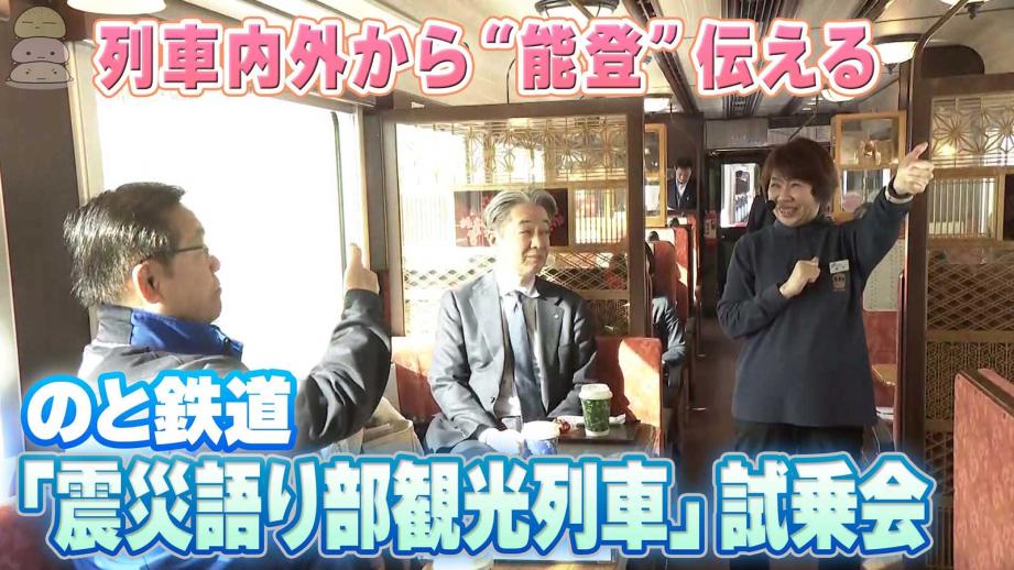 車窓からの風景とともに能登の今を伝えます。去年9月から運行が始まったのと鉄道の「語り部列車」が春から定期運行するのを前に2月14日、関係者に向けた試乗会が行われました。