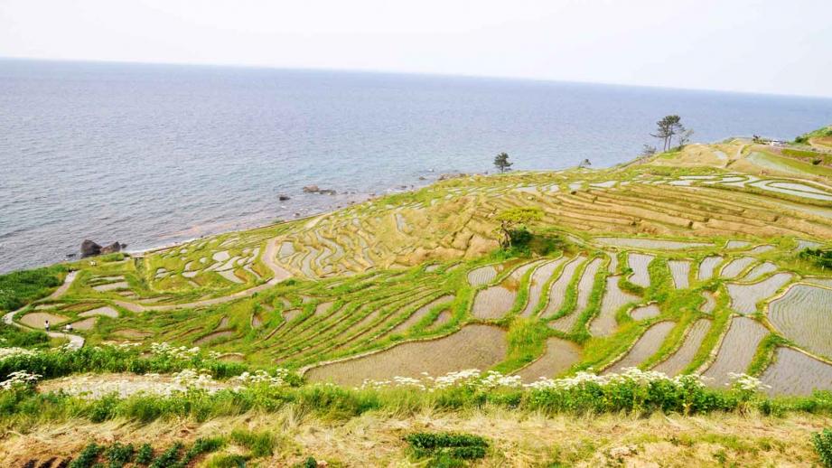 棚田のあぜ道を歩いて見学することも可能。散策には15分程度をみておけば楽しめますが、海岸まで下ったり、海と反対の山側に広がる棚田にも足を運んだりする場合には、時間に余裕をもって訪れましょう。