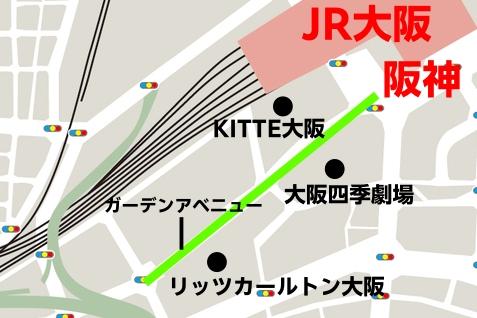 その他、大阪駅桜橋口から地下に降りて、西梅田駅に行くまでのところにある「ガーデンアベニュー」を通っていくことも可能です。「ガーデンアベニュー」は、空港バスが停車する「ハービス大阪」にも、「billboard live osaka」にもアクセス可能です。