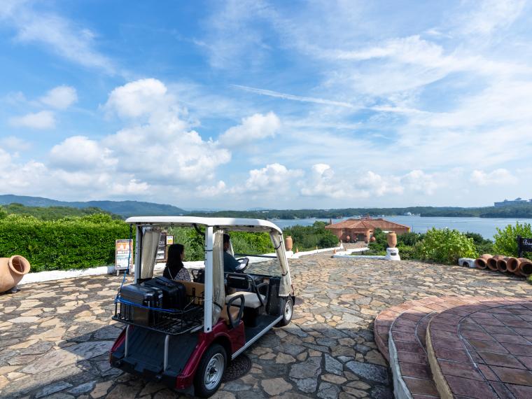 「志摩地中海村」へは、「名古屋」「大阪」「京都」から近鉄特急で約2〜3時間ほど。最寄り駅の近鉄「鵜方」駅からは無料送迎バスに乗り約15分で到着します。
