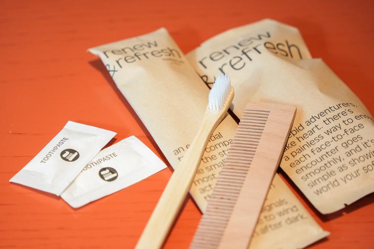 サステナビリティを重要視するプルマンでは、竹製の歯ブラシやコームなどを採用し、プラスチック量を削減。アメニティのパッケージには適正に管理された森林の木材で作られたFSC認証の紙が使われています。