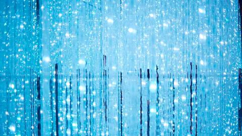 『生命は結晶化した儚い光』は、水と光のシャワー。まるで光の結晶のような水の白糸に触れると、結晶は弾け、光の原色が手のひらに映し出されます。