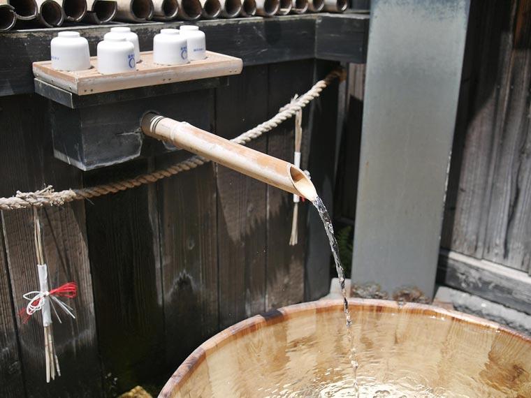 中庭の井戸で、酒造りに使われている伏水が飲めます。とても軟らかくておいしいので、ぜひ飲んでみてください。