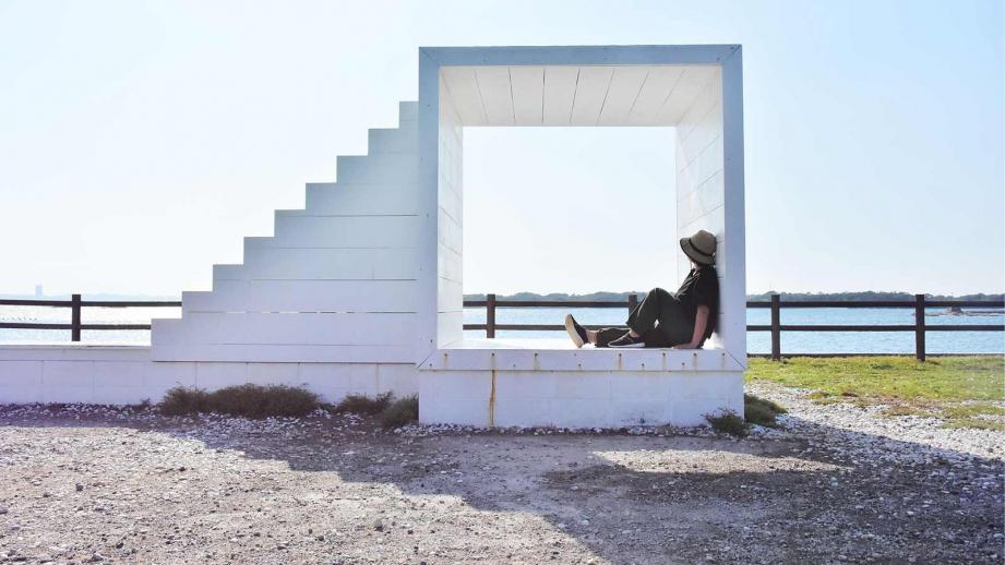 「海のそばで昼寝をしたら気持ちいいだろうな」というコンセプトのもと作られた、南川祐輝作のユニークなアートです。黒壁の集落をモチーフにした黒い箱のような部屋が9つ。箱の中で寝そべれば、佐久島の海も額縁で切り取られたようなアートに見えてきます!