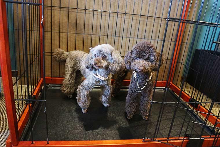 飼い主さんがお部屋を離れる時は、スタッフのいる「ドッグキャビン」に預けられるので、ワンちゃんは寂しい思いをしなくてすみます。