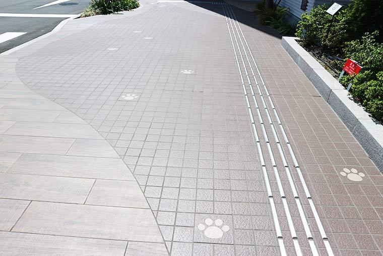 ホテルに到着して気づいたのが、歩道に描かれた肉球マーク。「このマークのある場所は、ワンちゃんと一緒に歩けます」というホテルからのメッセージ。 ワンちゃん連れでないお客様もいるホテルならではの心遣いです。